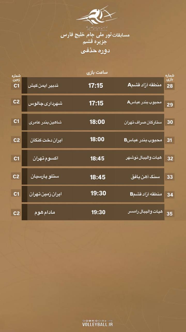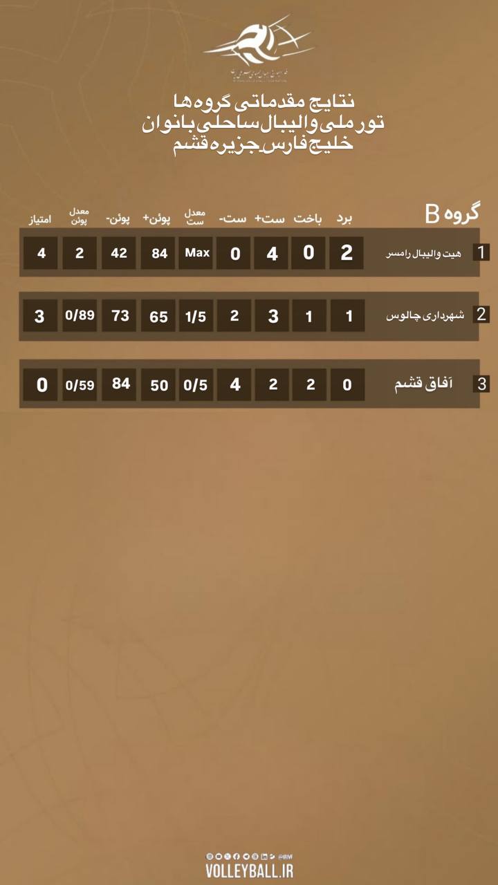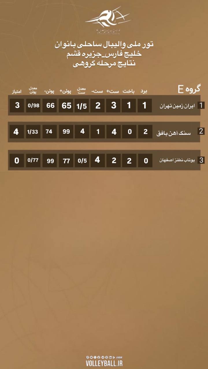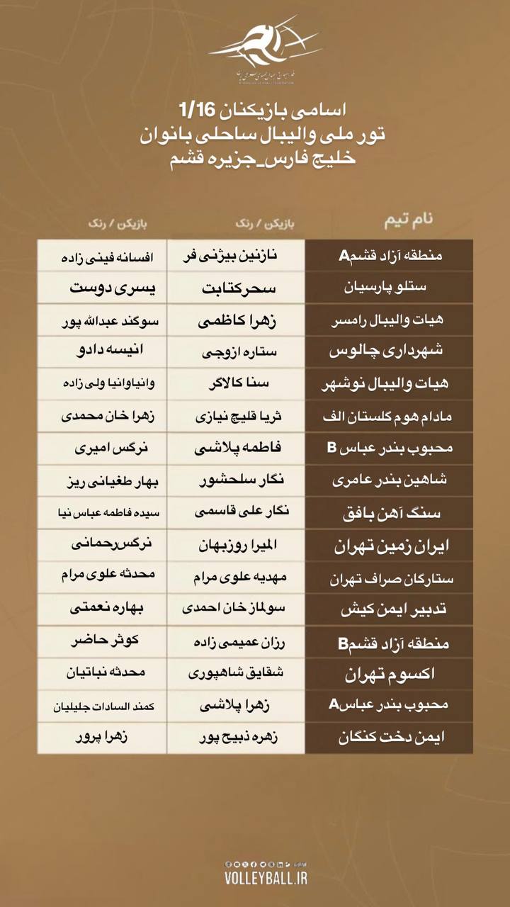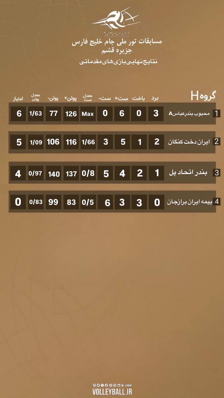 مرحله مقدماتی تور ملی والیبال ساحلی زنان جام «خلیج فارس» با معرفی ۱۶ تیم مرحله حذفی به پایان رسید.