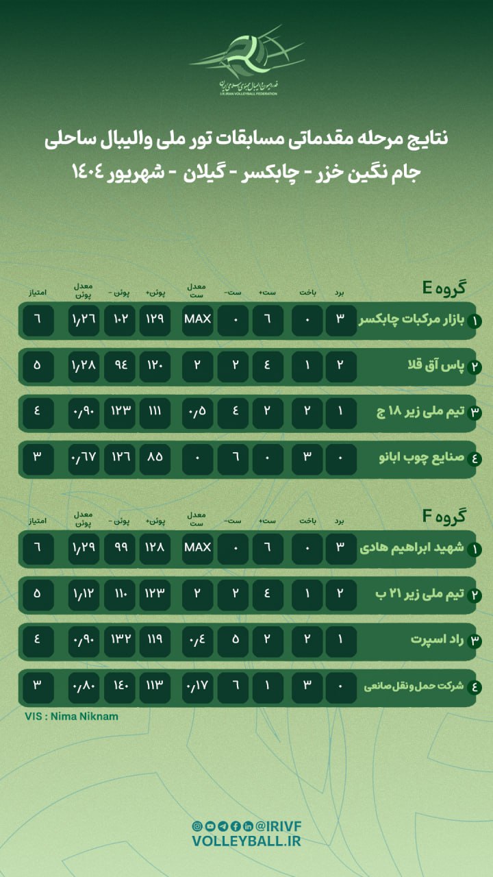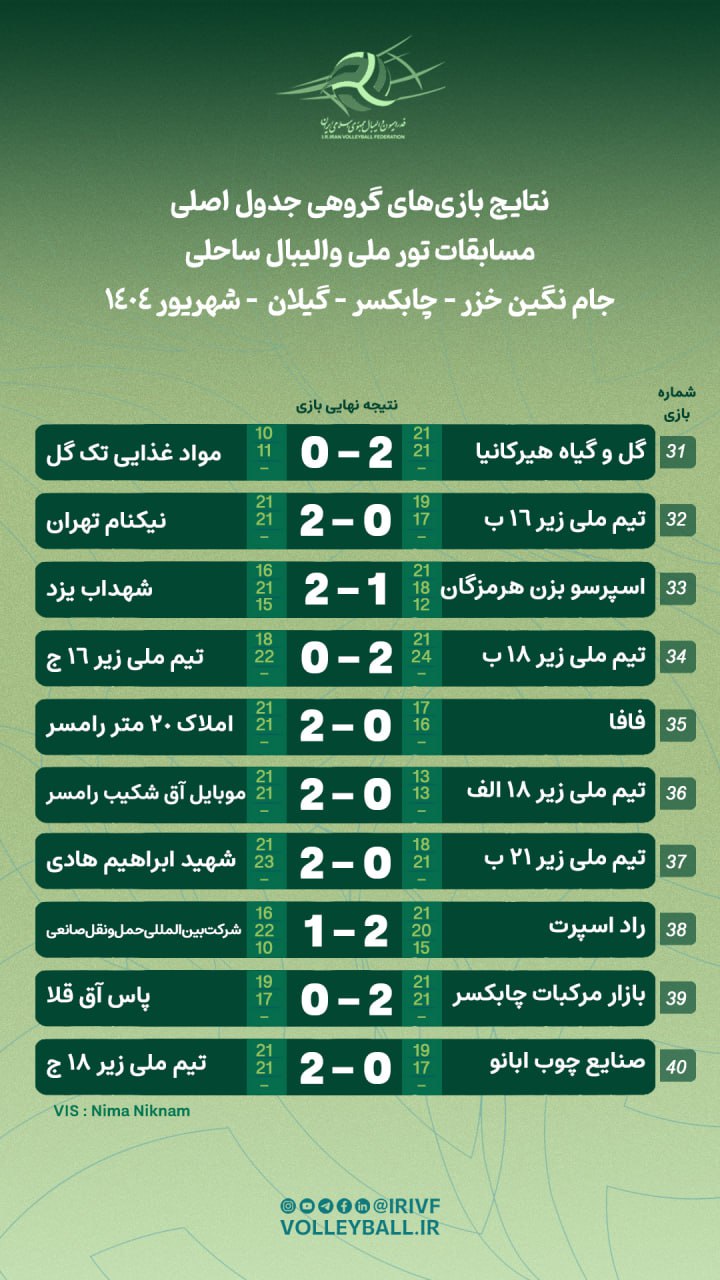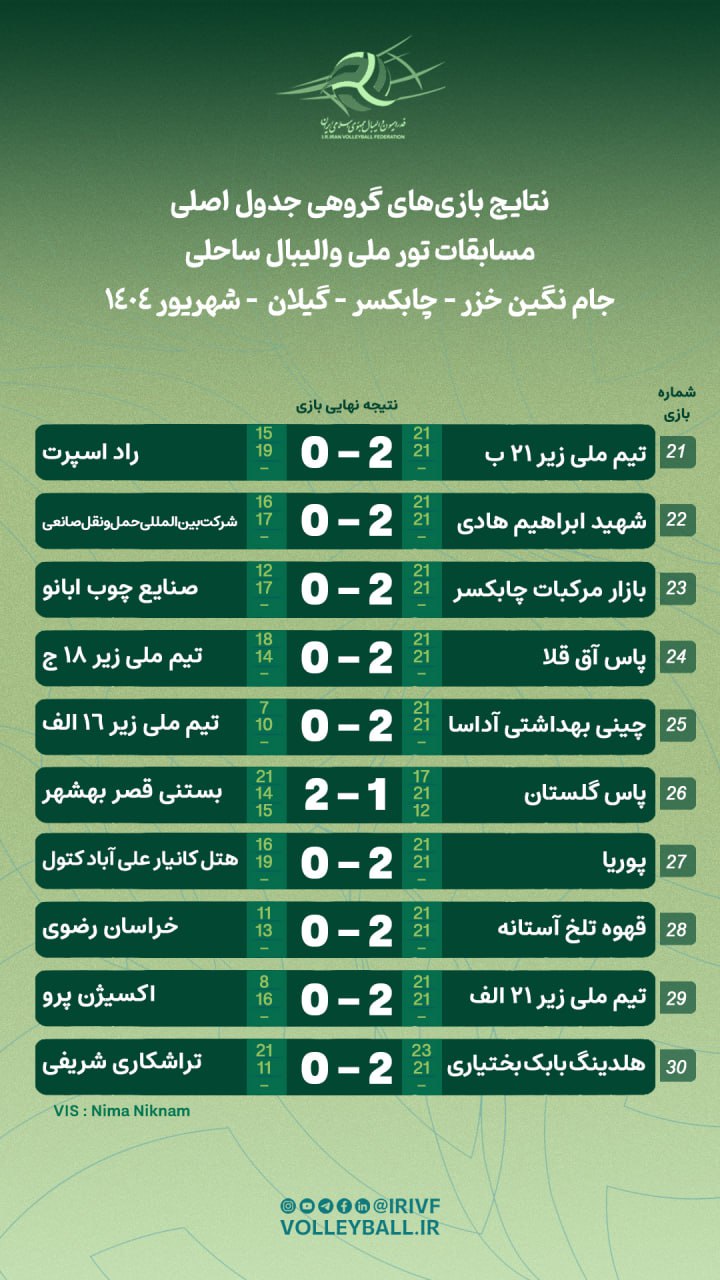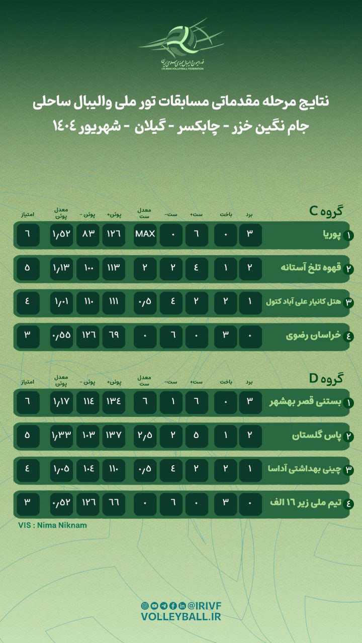 تور ملی ساحلی جام نگین خزر: نتایج ۲۵ دیدار دیگر مشخص شد