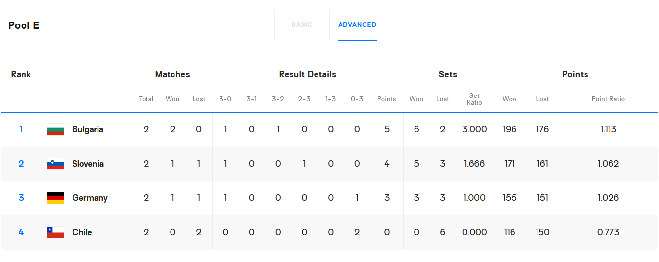 اسلوونی ۲ – بلغارستان ۳ (۱۹ بر ۲۵، ۱۴ بر ۲۵، ۲۵ بر ۱۸ و ۲۵ بر ۲۳ و ۱۳ بر ۱۵)