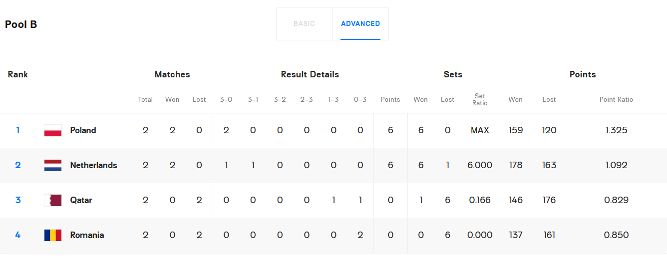 با کسب این نتایج تیمهای ترکیه و کانادا از گروه G، بلغارستان از گروه E و هلند و لهستان از گروه B صعودشان به مرحله حذفی و ۱۶ تیم برتر قطعی شده است. از سوی دیگر تیمهای ژاپن، لیبی، شیلی، کلمبیا، رومانی و قطر دیگر امیدی برای صعود ندارند.