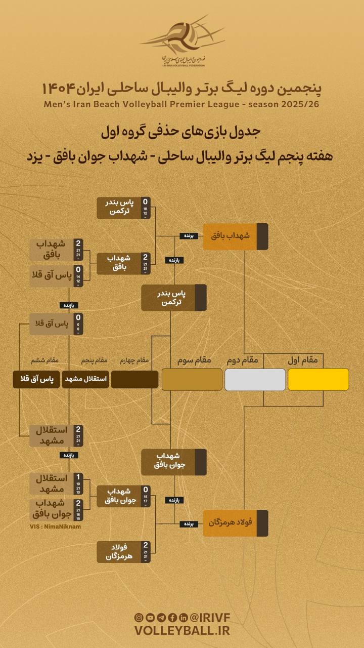 لیگ برتر ساحلی؛ فینالیستهای هفته پنجم مشخص شدند