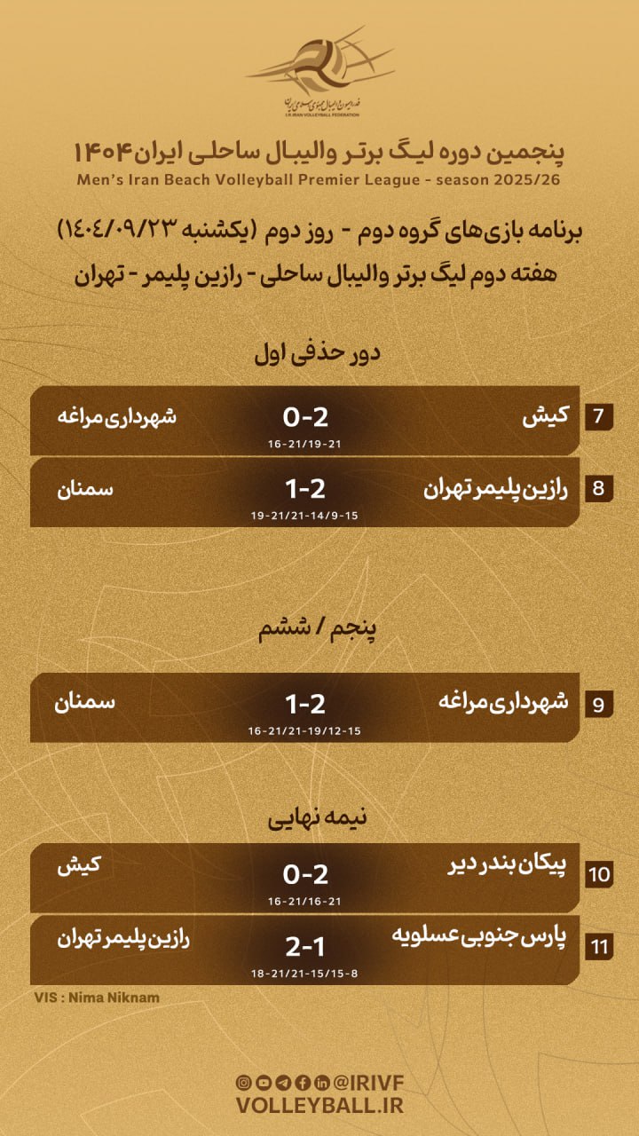 هفته دوم لیگ برتر ساحلی؛ رونمایی از فینالیست‌های گروه دوم