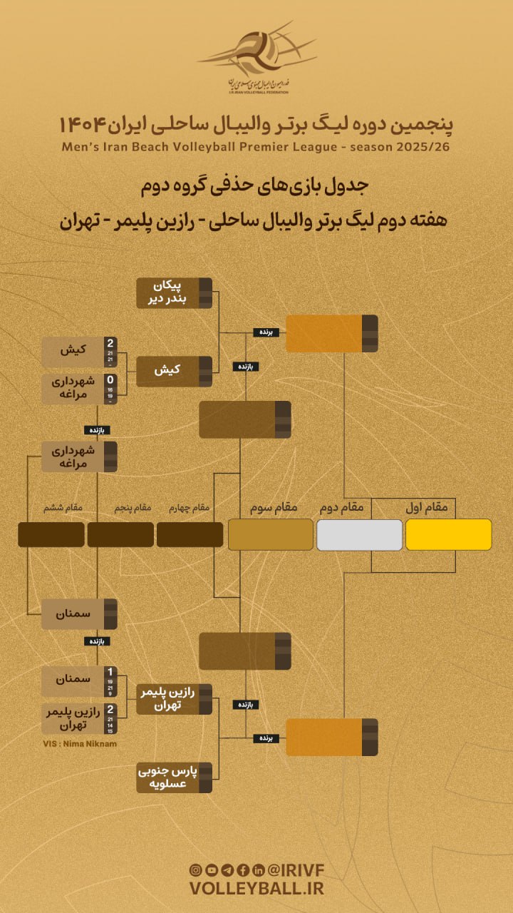 هفته دوم لیگ برتر ساحلی؛ چهار تیم نیمه نهایی گروه دوم مشخص شدند