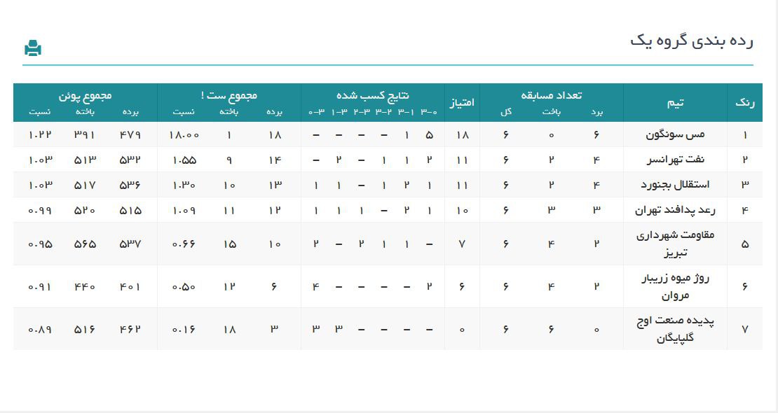 پایان دور رفت لیگ دسته یک مردان و رونمایی از قهرمانان نیم فصل