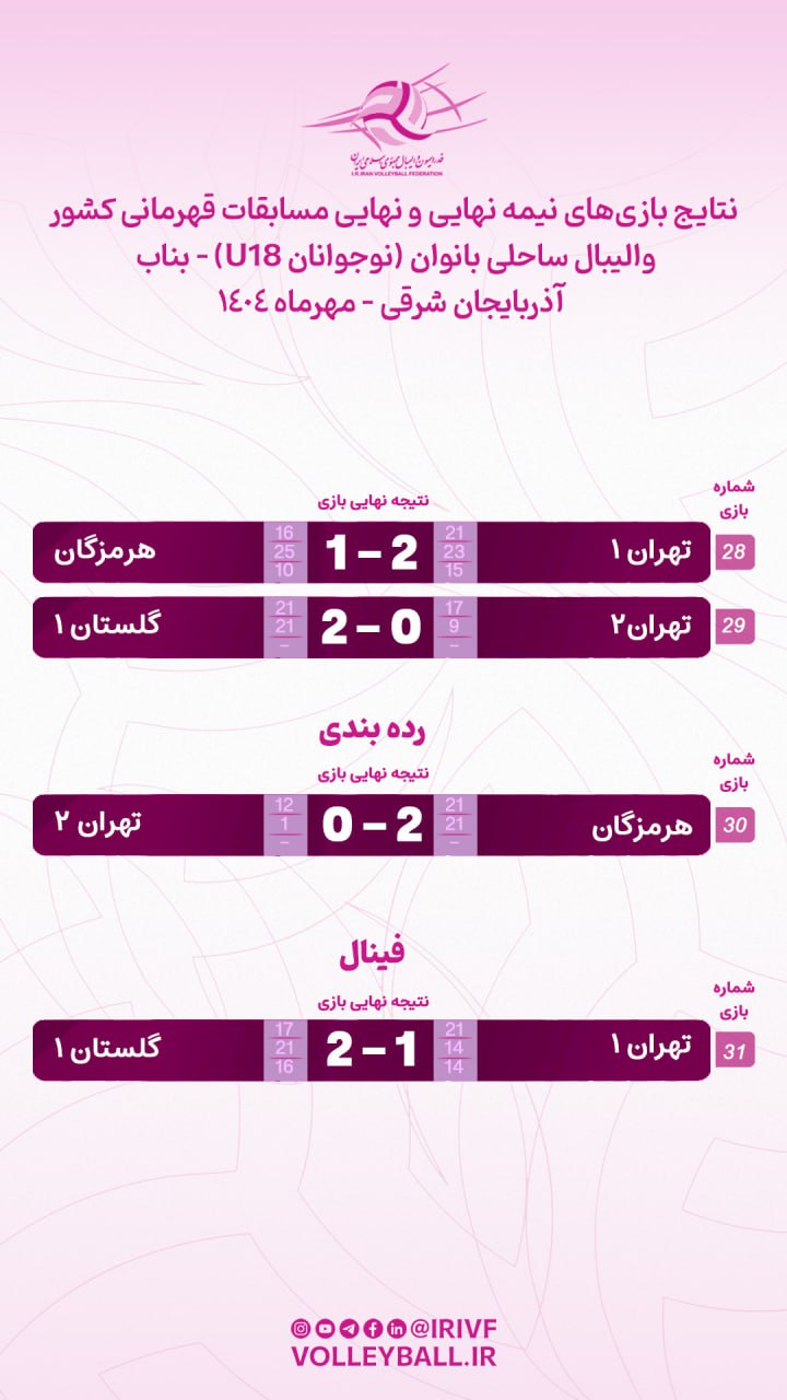 گلستان قهرمان ساحلی زیر ۱۸ سال دختر کشور