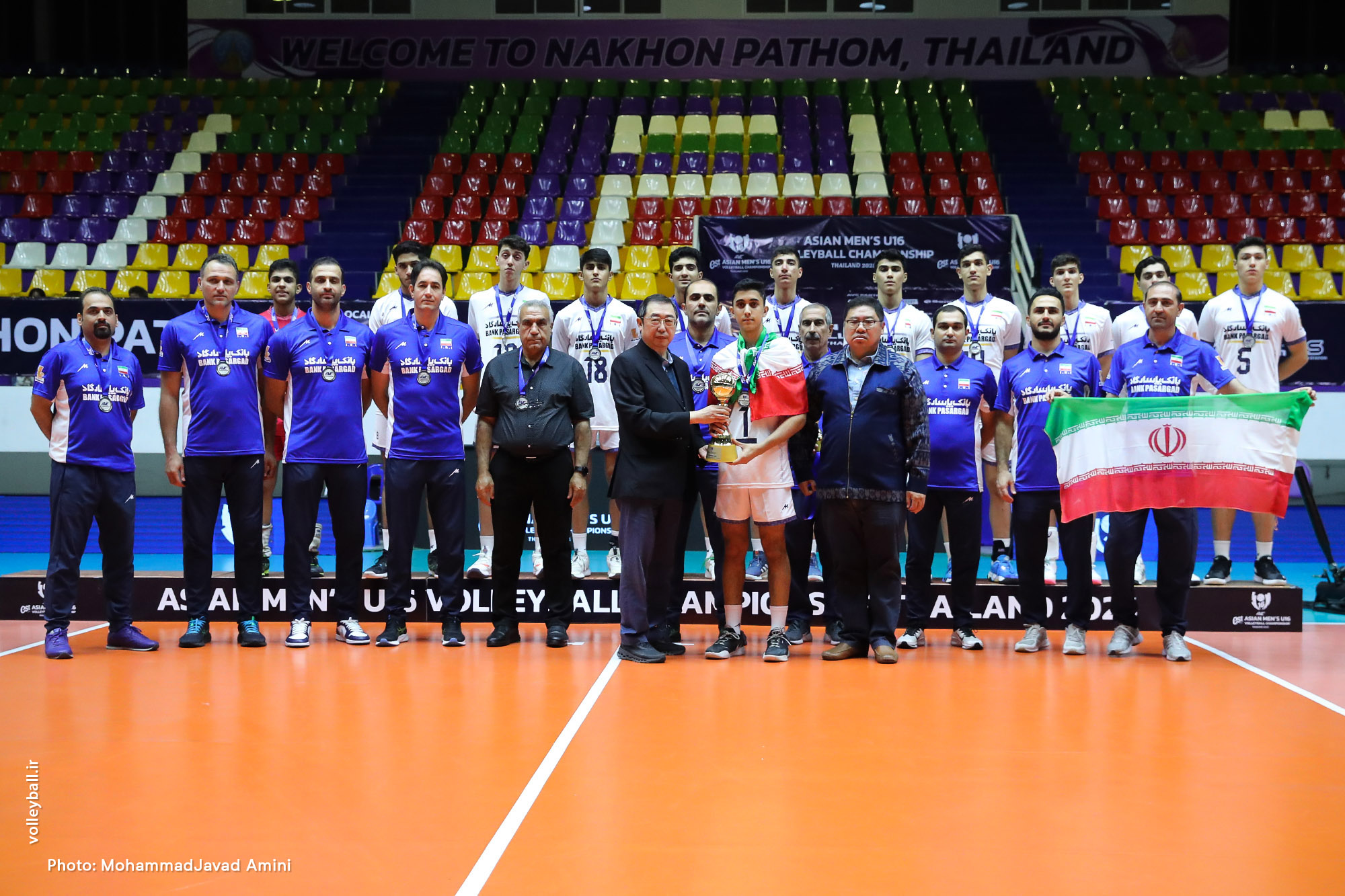 محمدرضا شریفپور (سرپرست)، آرش صادقیانی (سرمربی)، حسام الدین نائیجی، وحید صادقی و اصغر نجفی (مربیان)، حسین وزیری (مشاور فنی)، محمدباقر محمدپناه (بدنساز)، محمدمهدی اسدی (فیزیوتراپ)، امیرحسن صمیمی (آنالیزور) و هادی صفری (روانشناس)، کادر فنی تیم ایران در رقابتهای قهرمانی مردان زیر ۱۶ سال آسیا هستند.