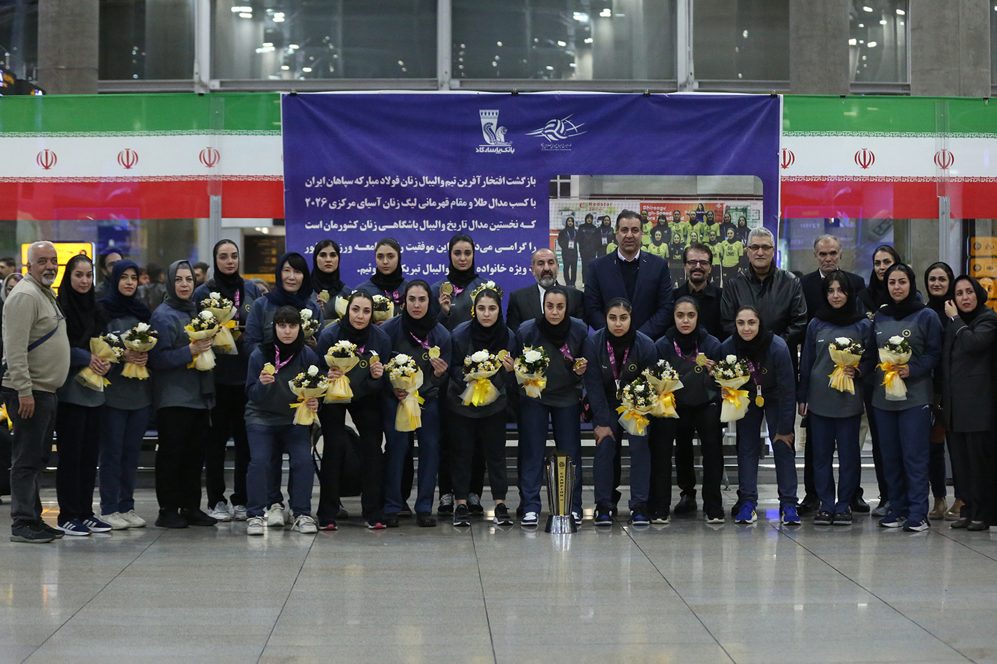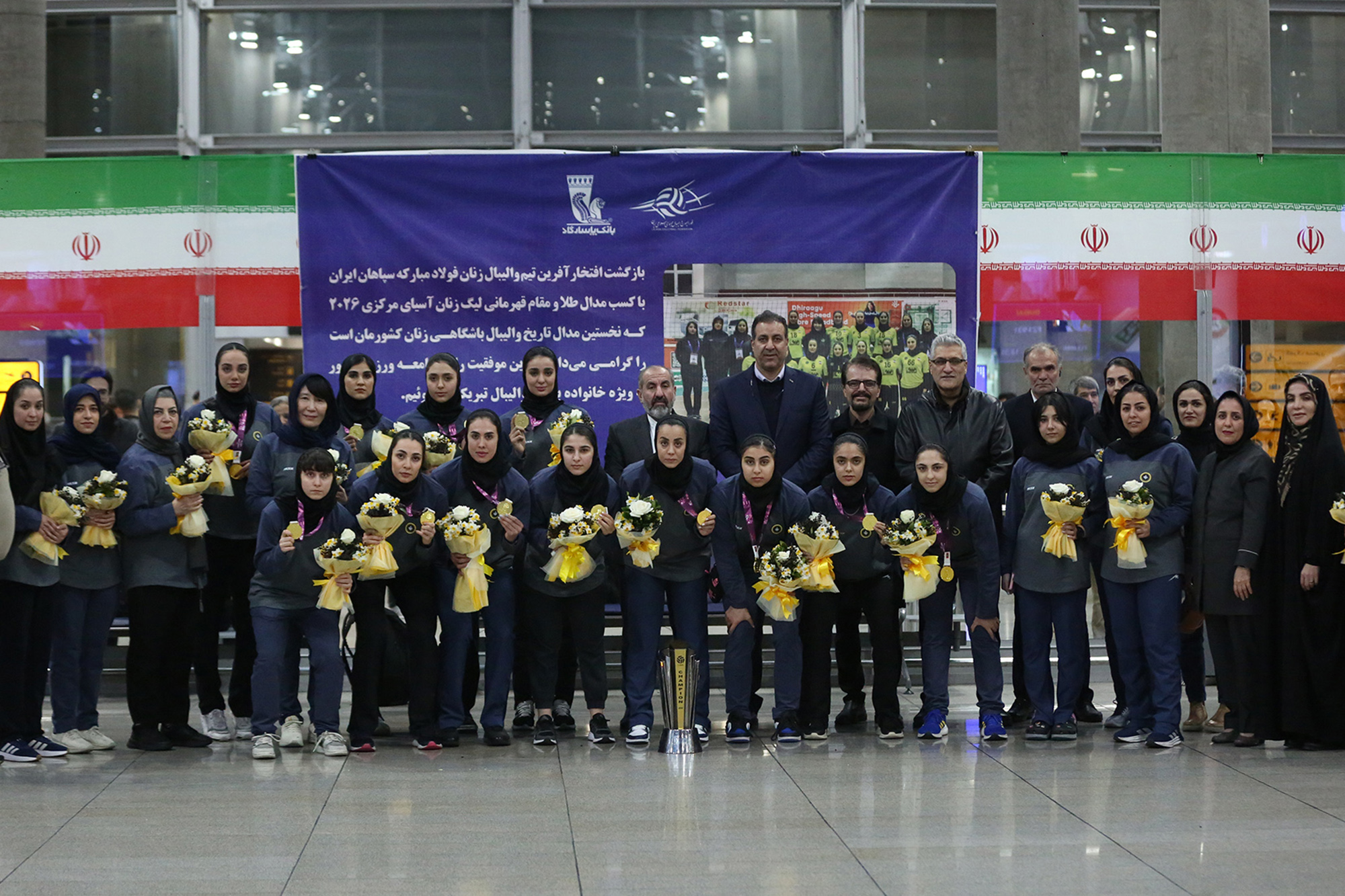لیگ زنان آسیای مرکزی ۲۰۲۶ | بازگشت تیم والیبال سپاهان با قهرمانی از مسابقات لیگ زنان آسیای مرکزی | عکس