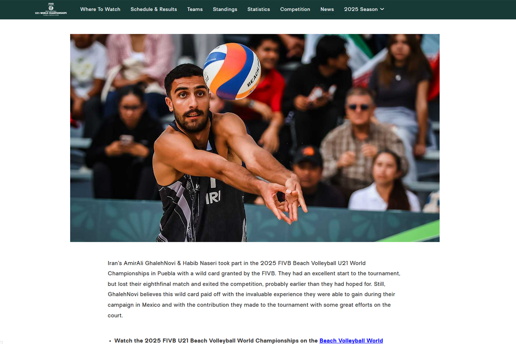 ساحلی قهرمانی زیر 21 سال جهان؛ نگاه ویژه والیبال ورلد به عملکرد تیم جوان ایرانقلعهنوی: رقابت برای المپیک در آسیا فشرده است/ برای ارتقای مهارتها سخت تلاش میکنیم