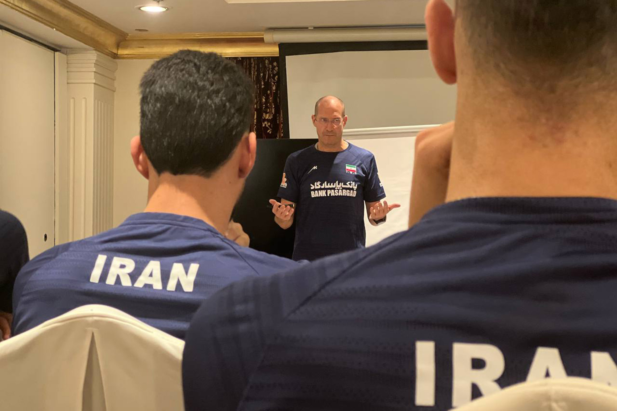 جلسه فنی و انضباطی پیاتزا با ملیپوشان والیبال ایران در دوحه